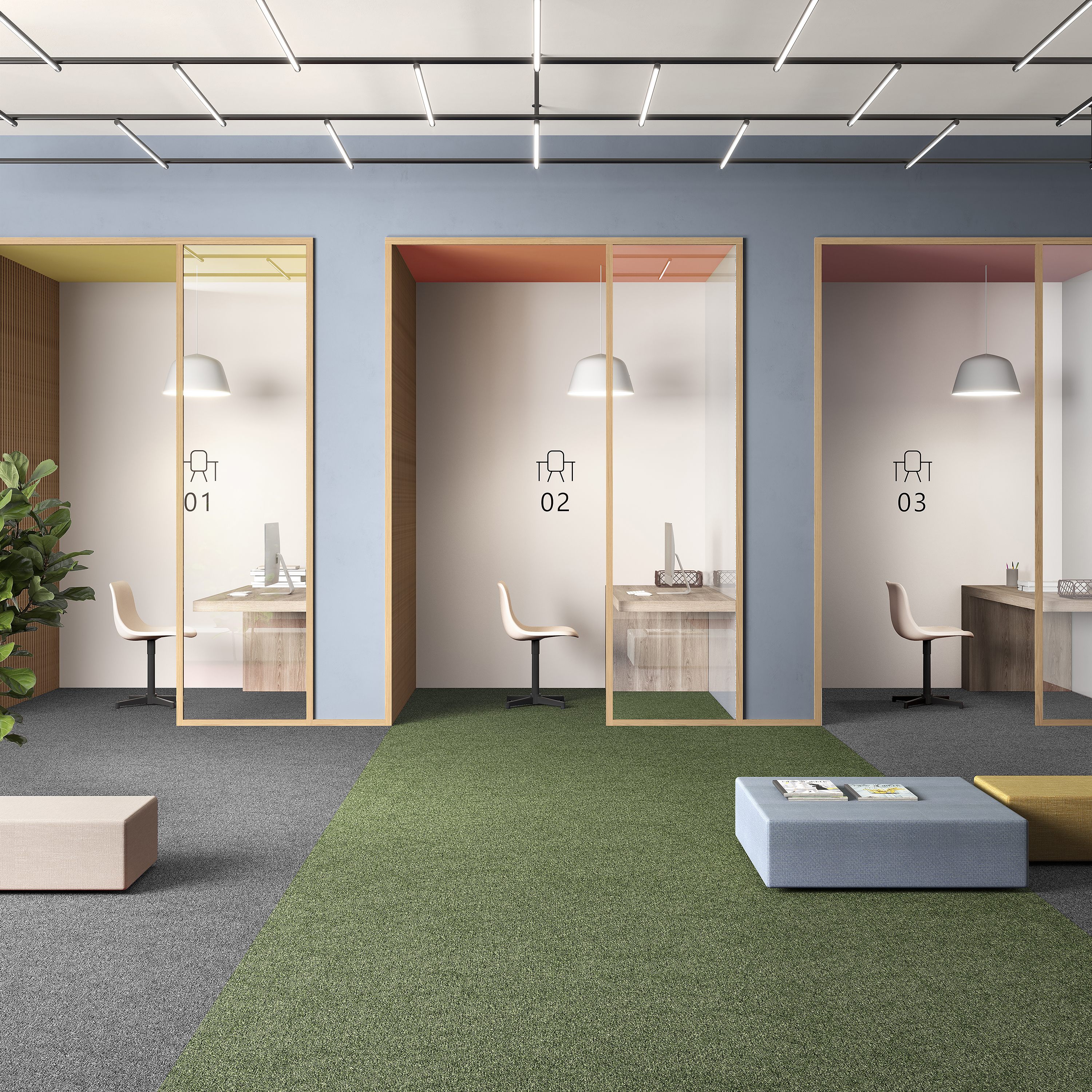 Модульное напольное покрытие для коммерческих помещений с высокой проходимостью. Устойчива к воздействию ножек мебели и колесиков кресел в течение длительного времени.